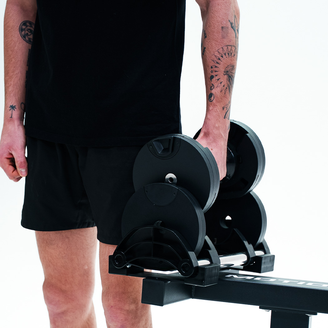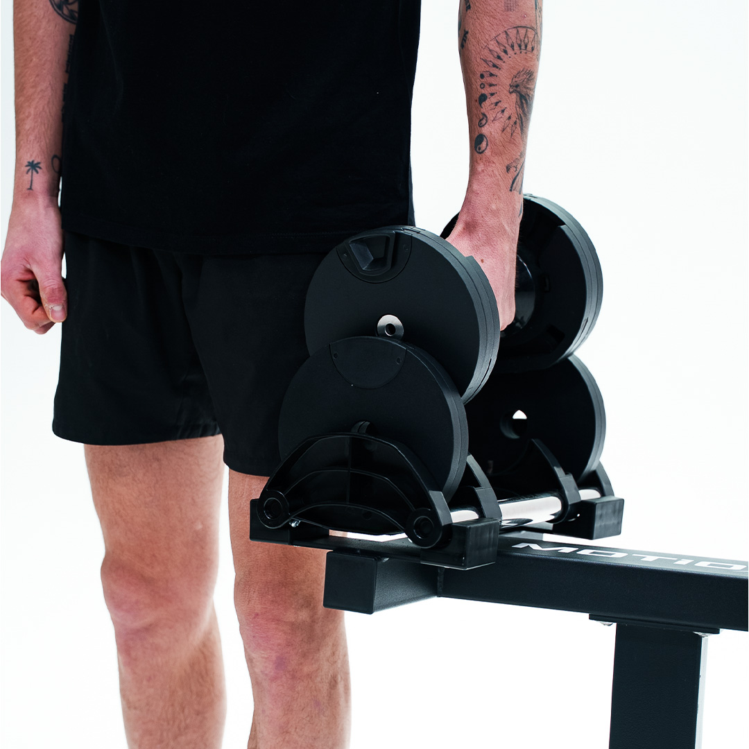Ovaj stalak je posebno dizajniran za podesive bučice MOTIOX i kompatibilan je s modelima:
